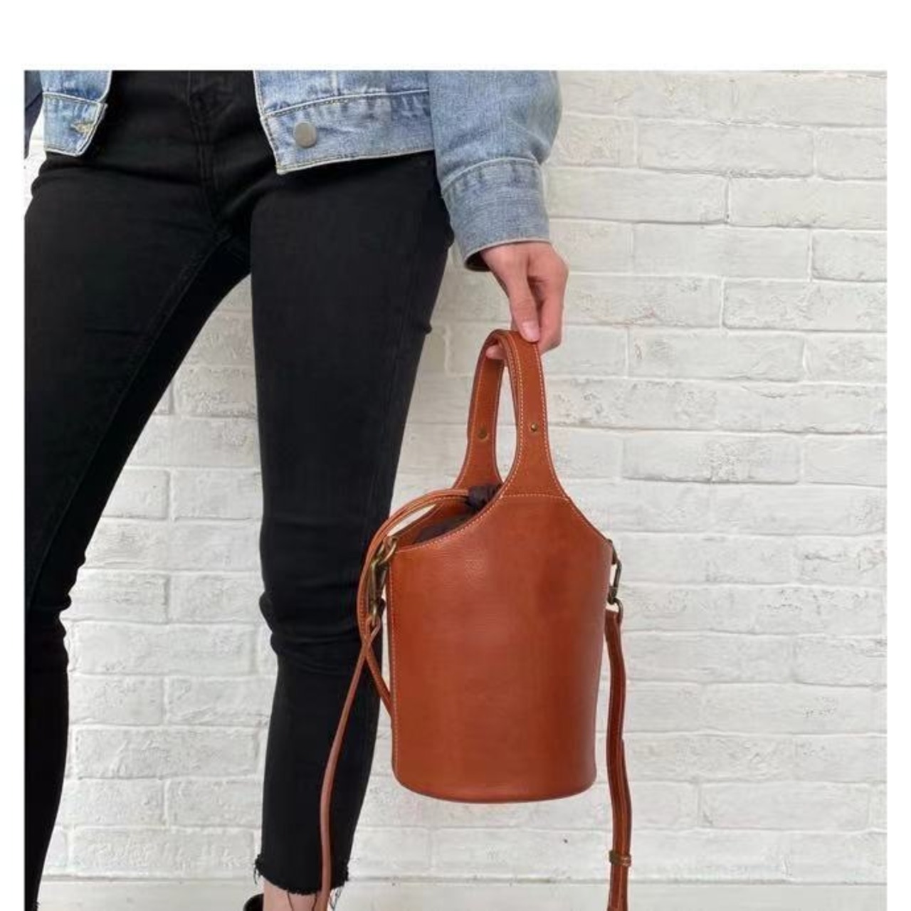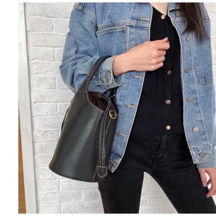 きちんとにもカジュアルにもあわせられる、今流行りのバケツ型ハンドバッグです。