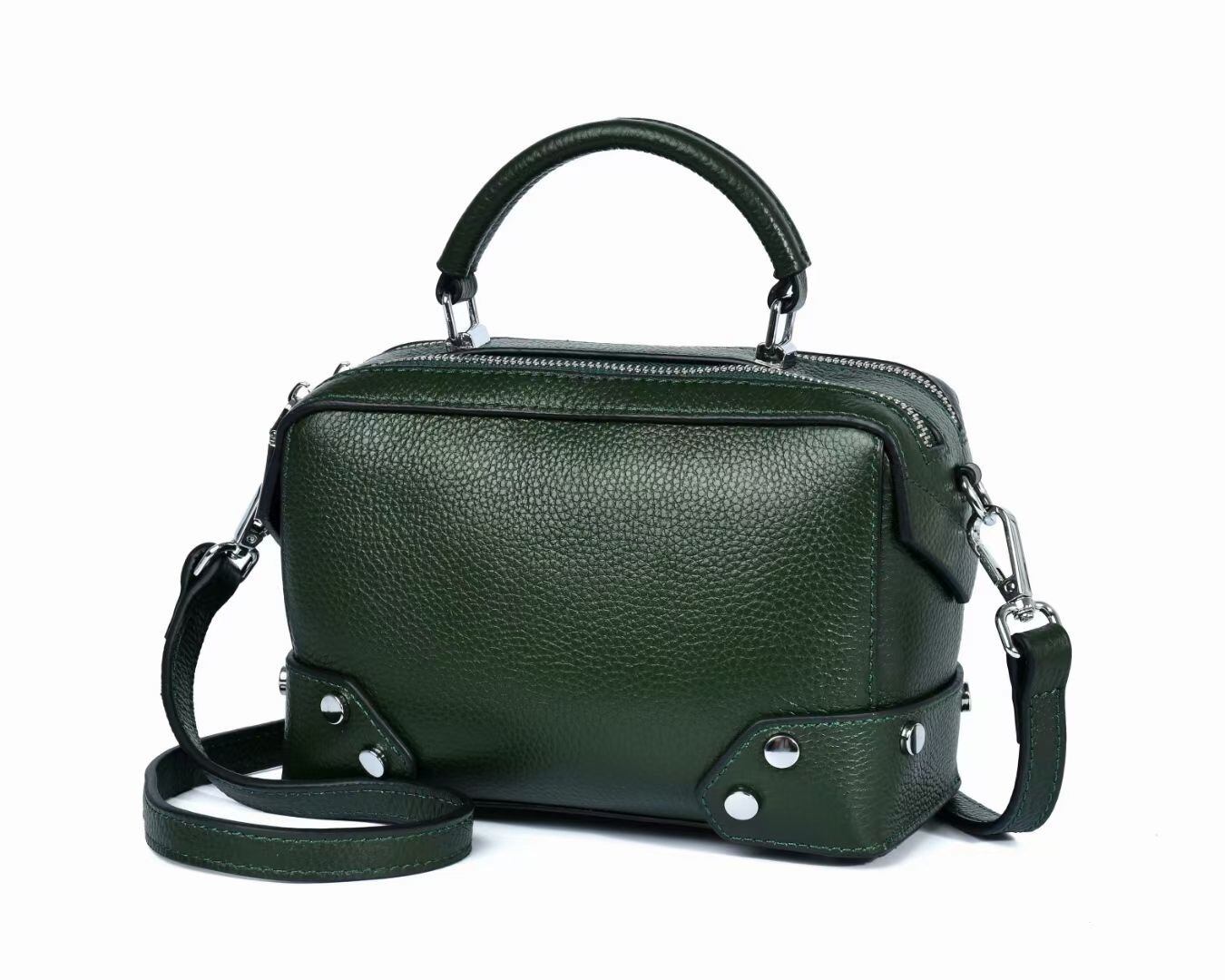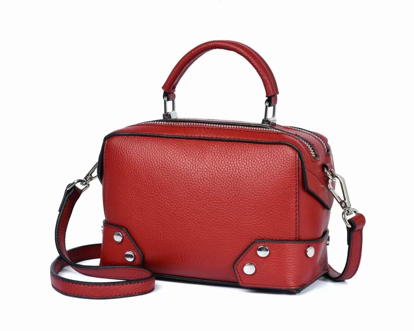 コロンとしたスクエア型に両下サイドのスタッズが辛口なデザインになっていてとても魅力的です。