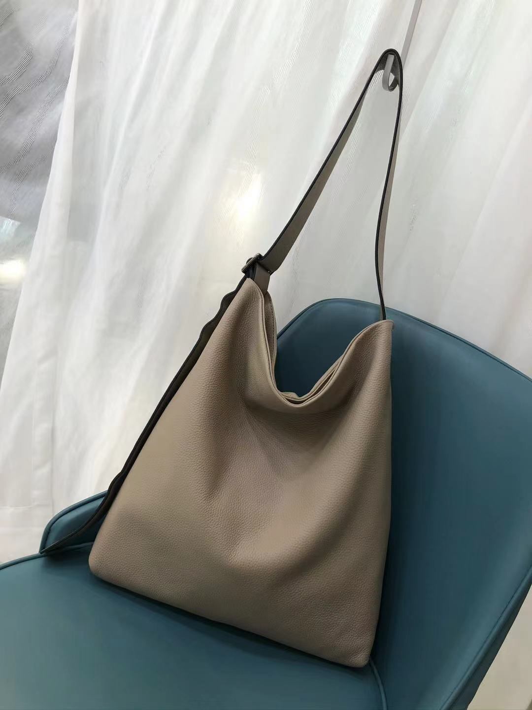 レザーショルダーバッグです。カラーはブラック、カーキ、グリーン、ピンク、レッド、グレイ、ホワイト、ブラウン、ダークブルーの9色となります。サイズは高さ38cm x 幅40cm x マチ4cmになります。