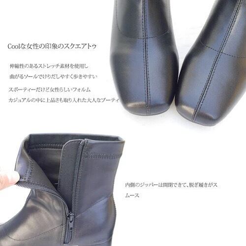 ブーツ ブーティ サイドジッパー 足首丈 スムース スエード ミドルヒール 5.0cm (of-2B) YO-902