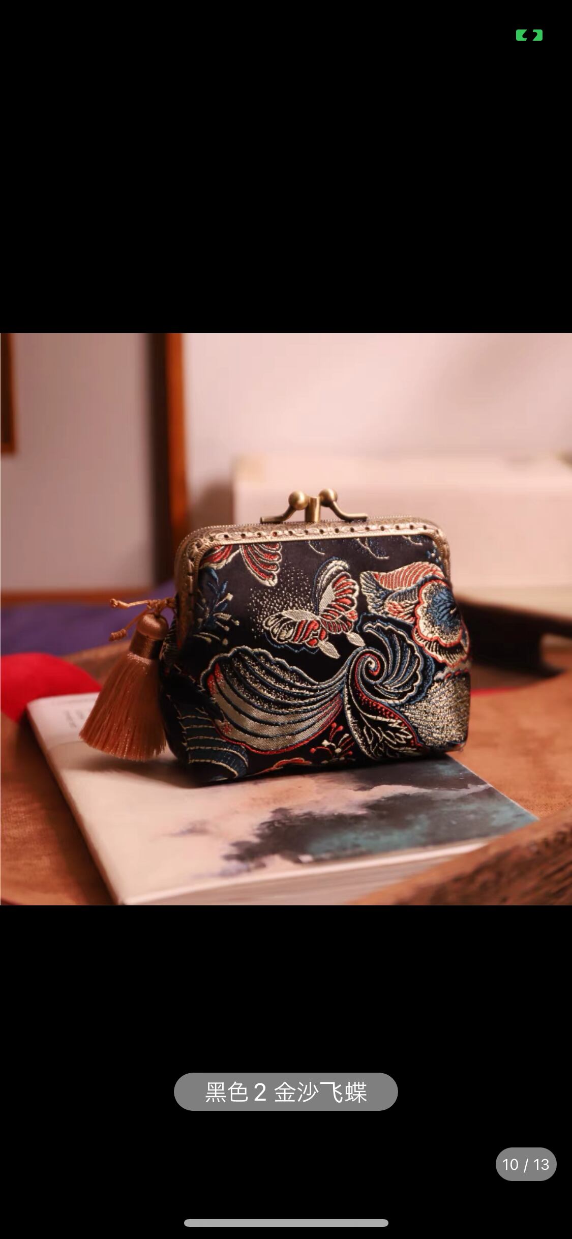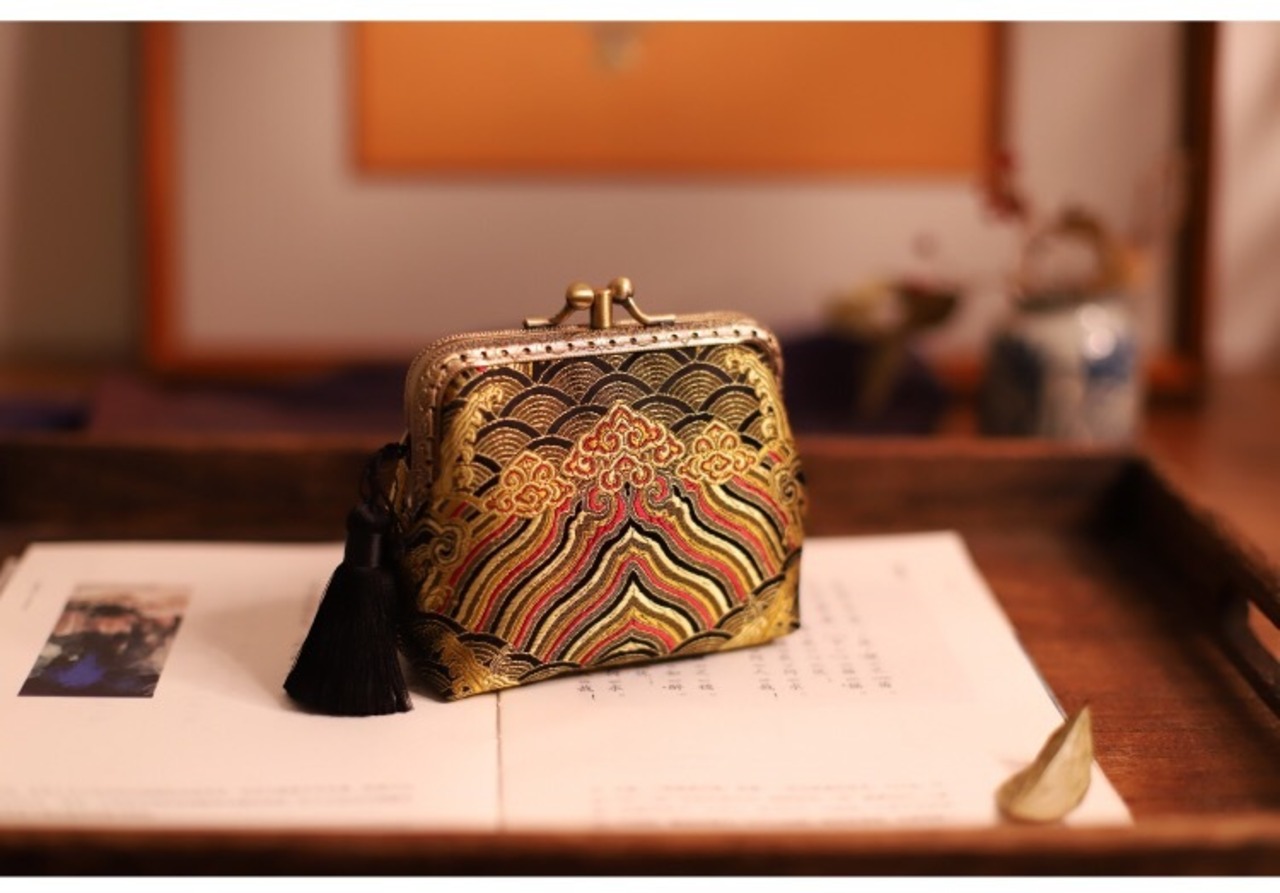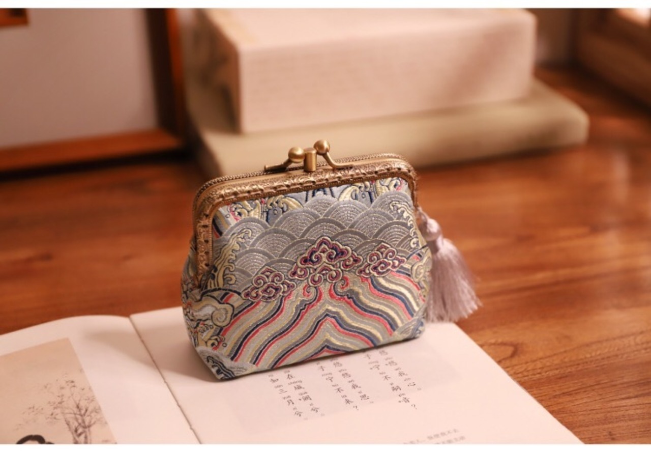12種類のきらびやかな刺繍がされている小銭入れ。